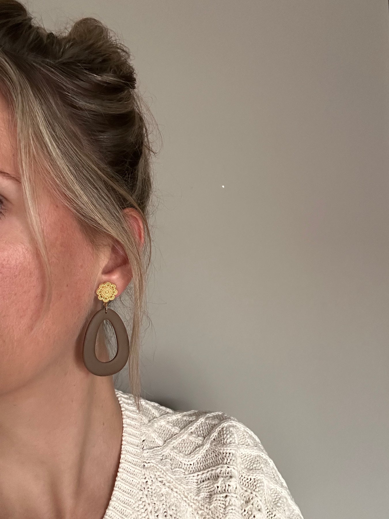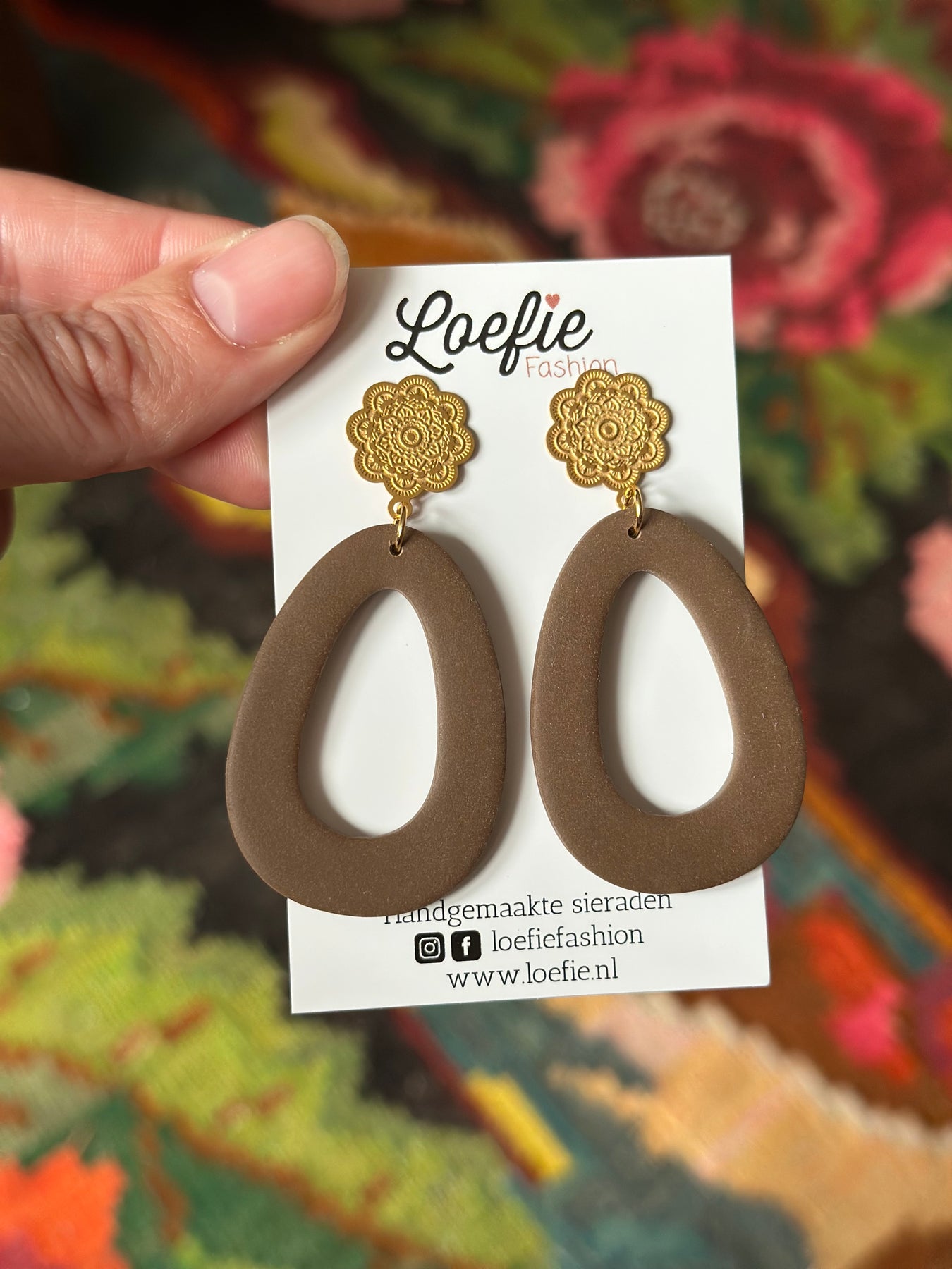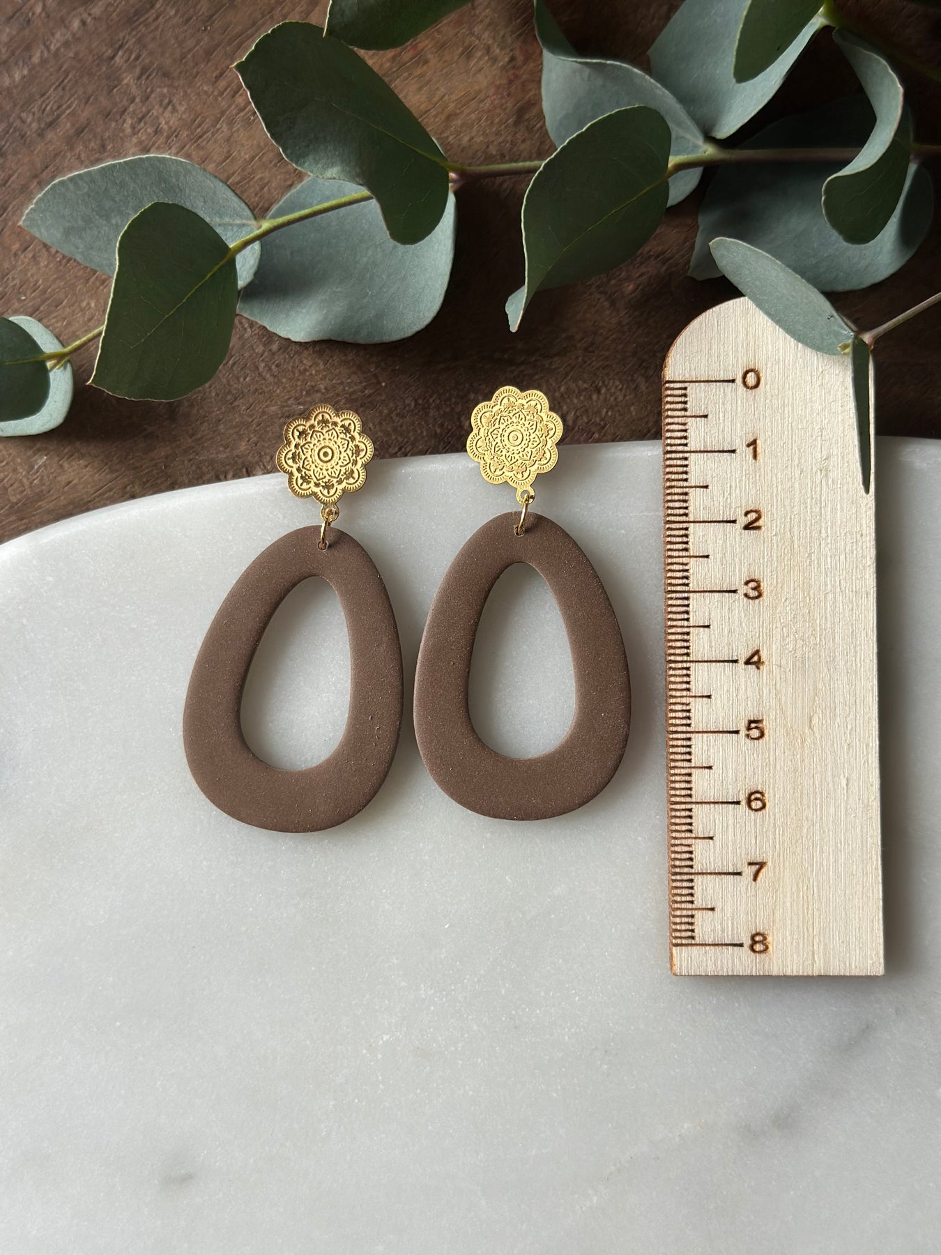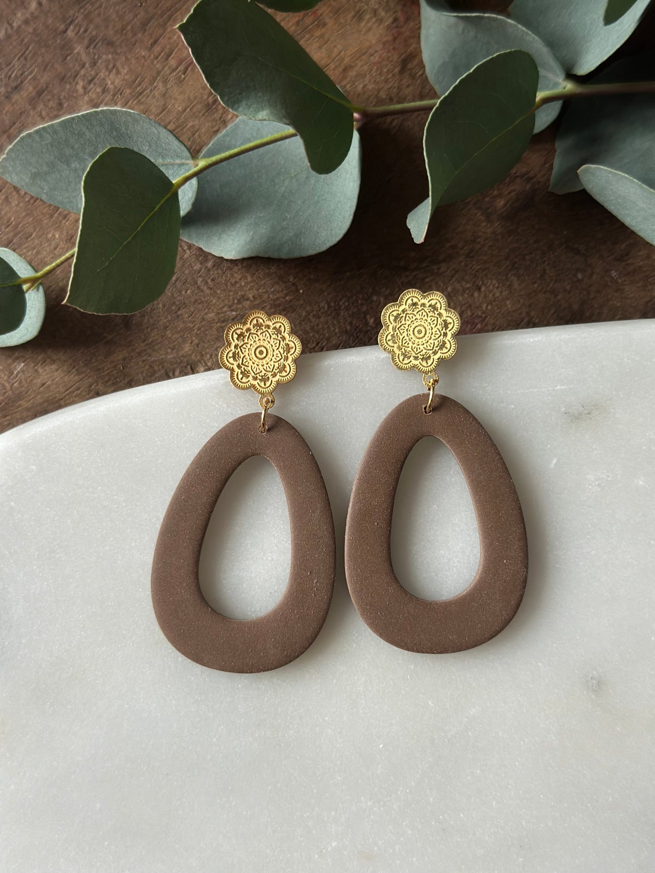 Prachtige bruine statement oorbellen in een tijdloze vorm. Lichtgewicht.
