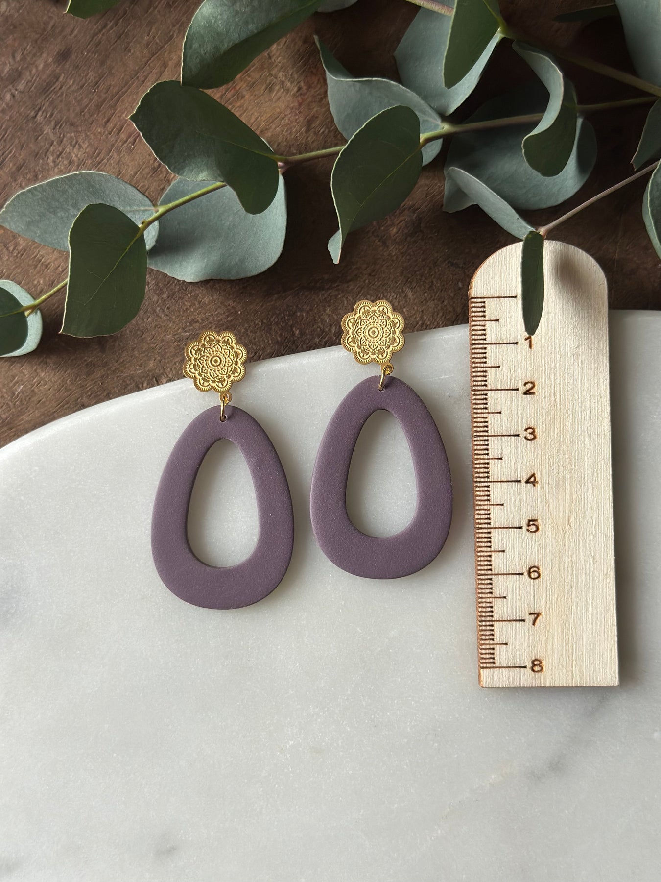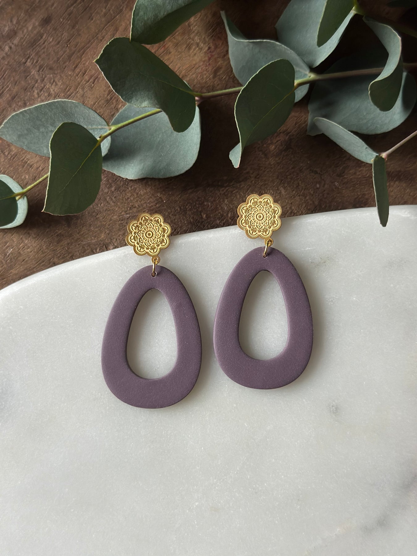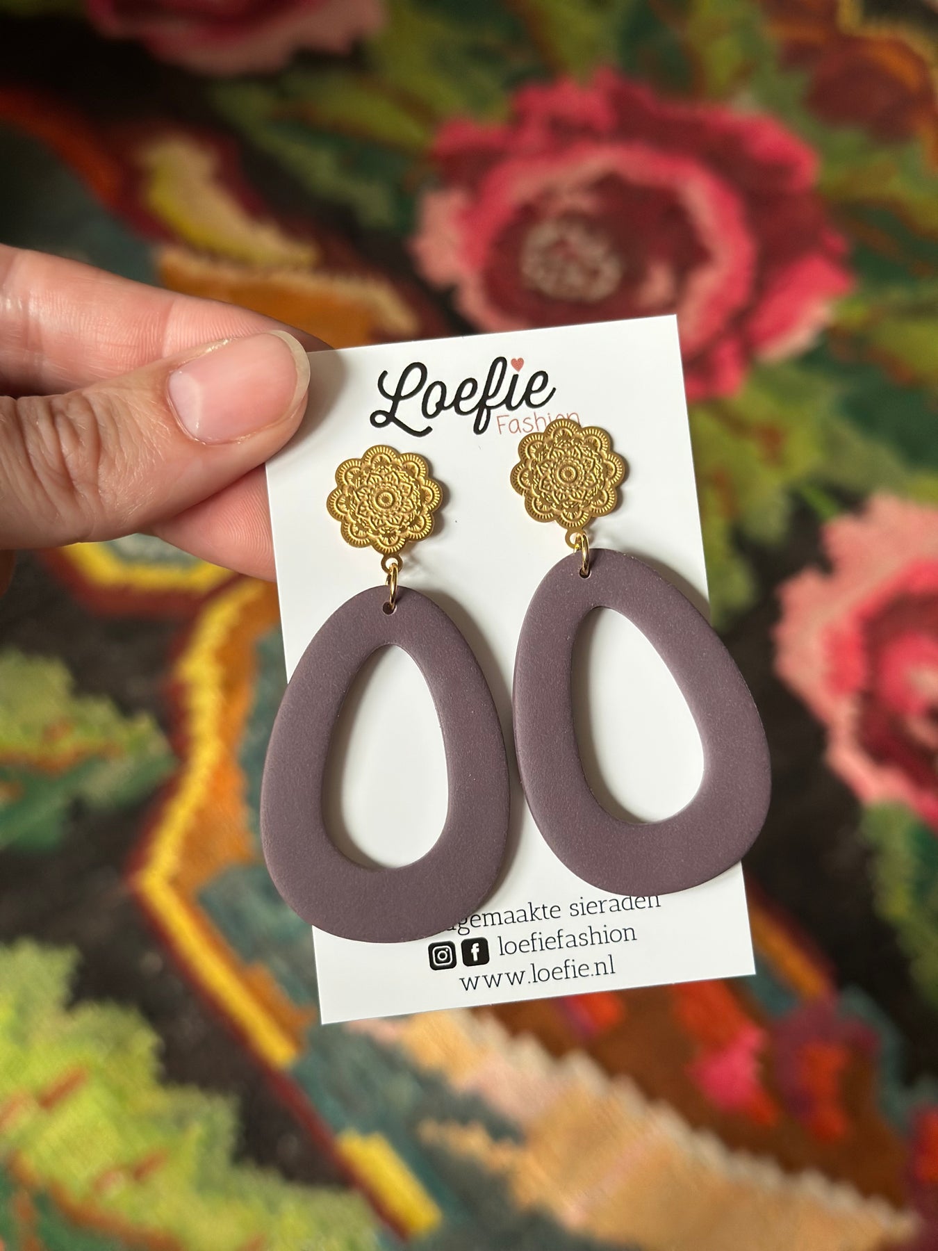 Prachtige aubergine kleurige statement oorbellen in een tijdloze vorm. Lichtgewicht.