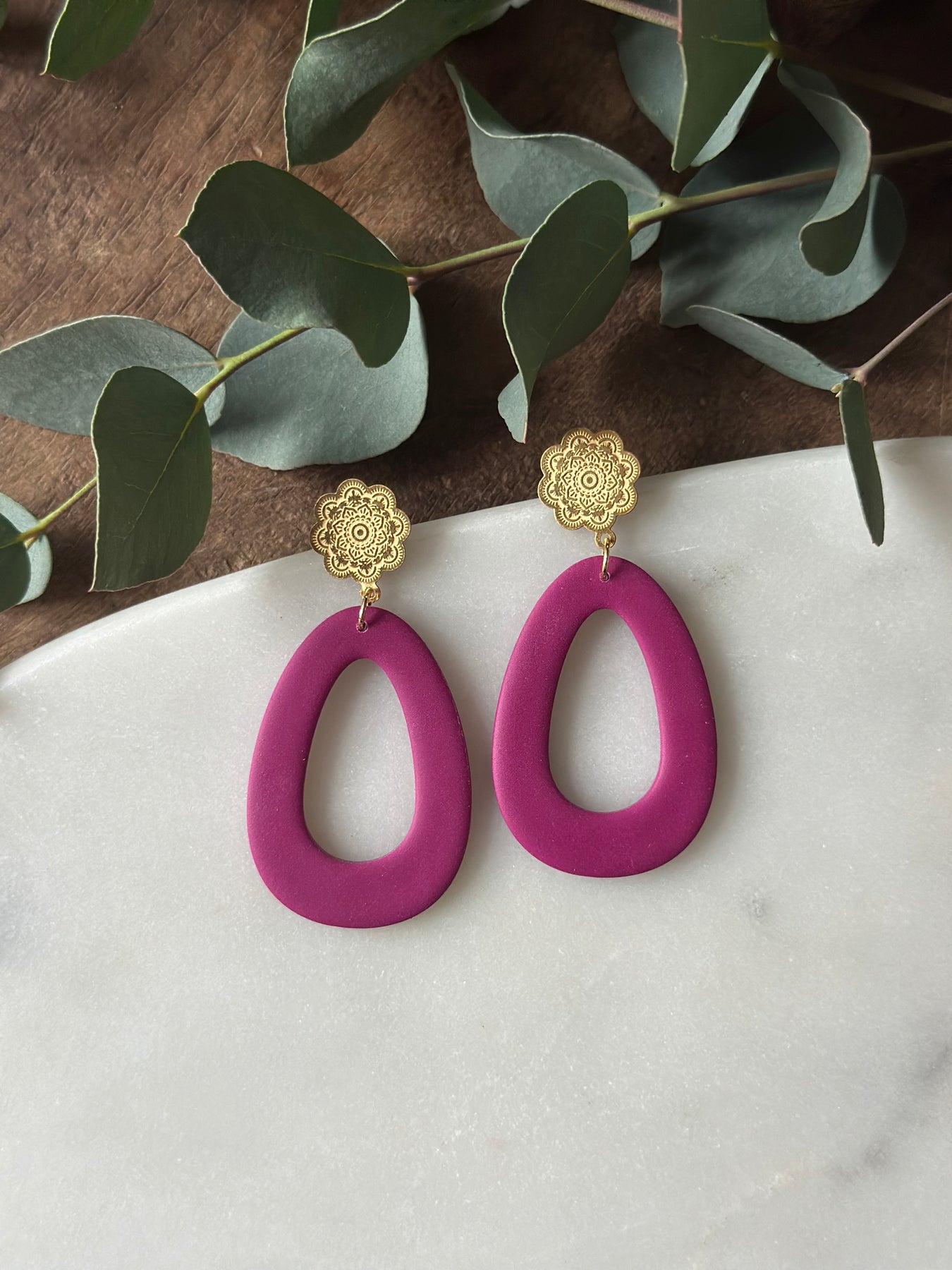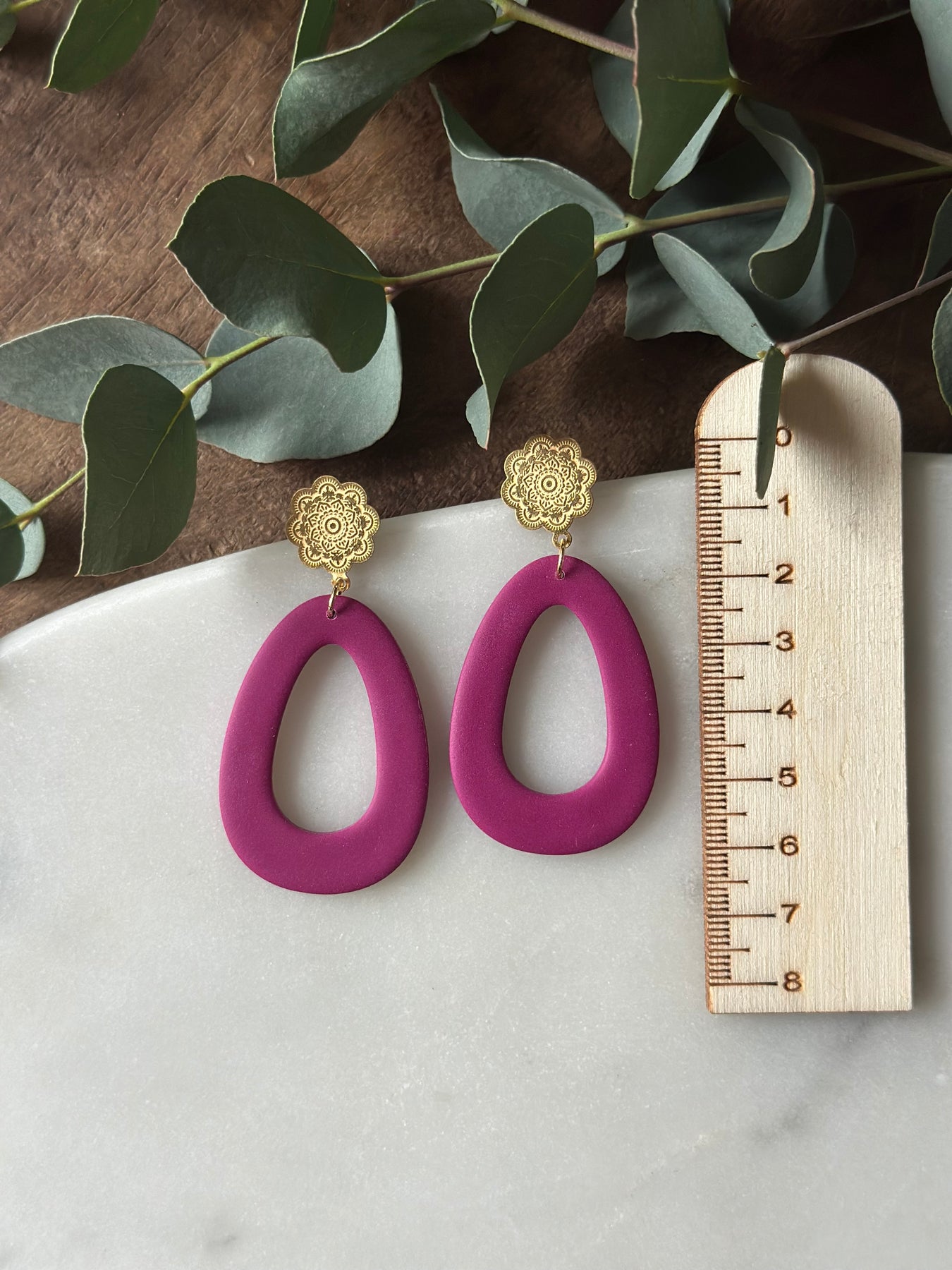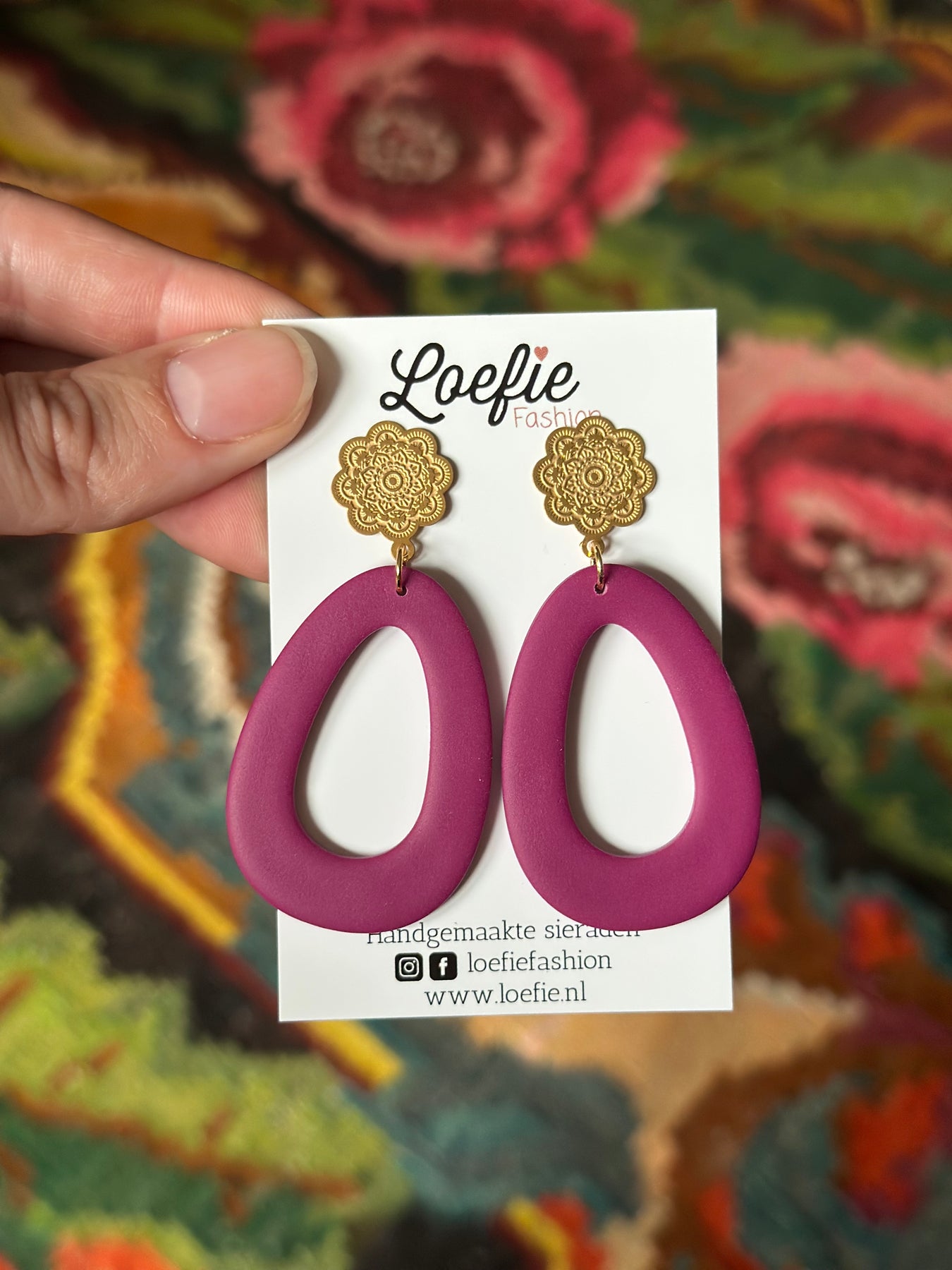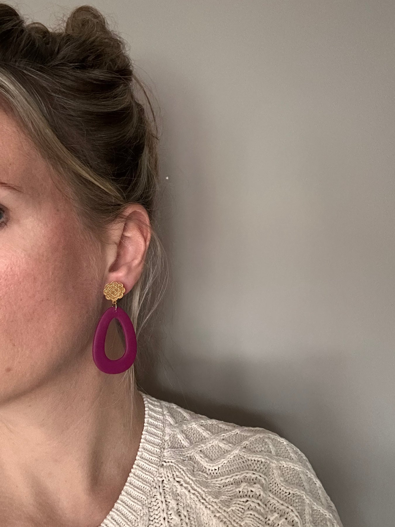 Prachtige fuchsia kleurige statement oorbellen ik een tijdloze vorm. Lichtgewicht.